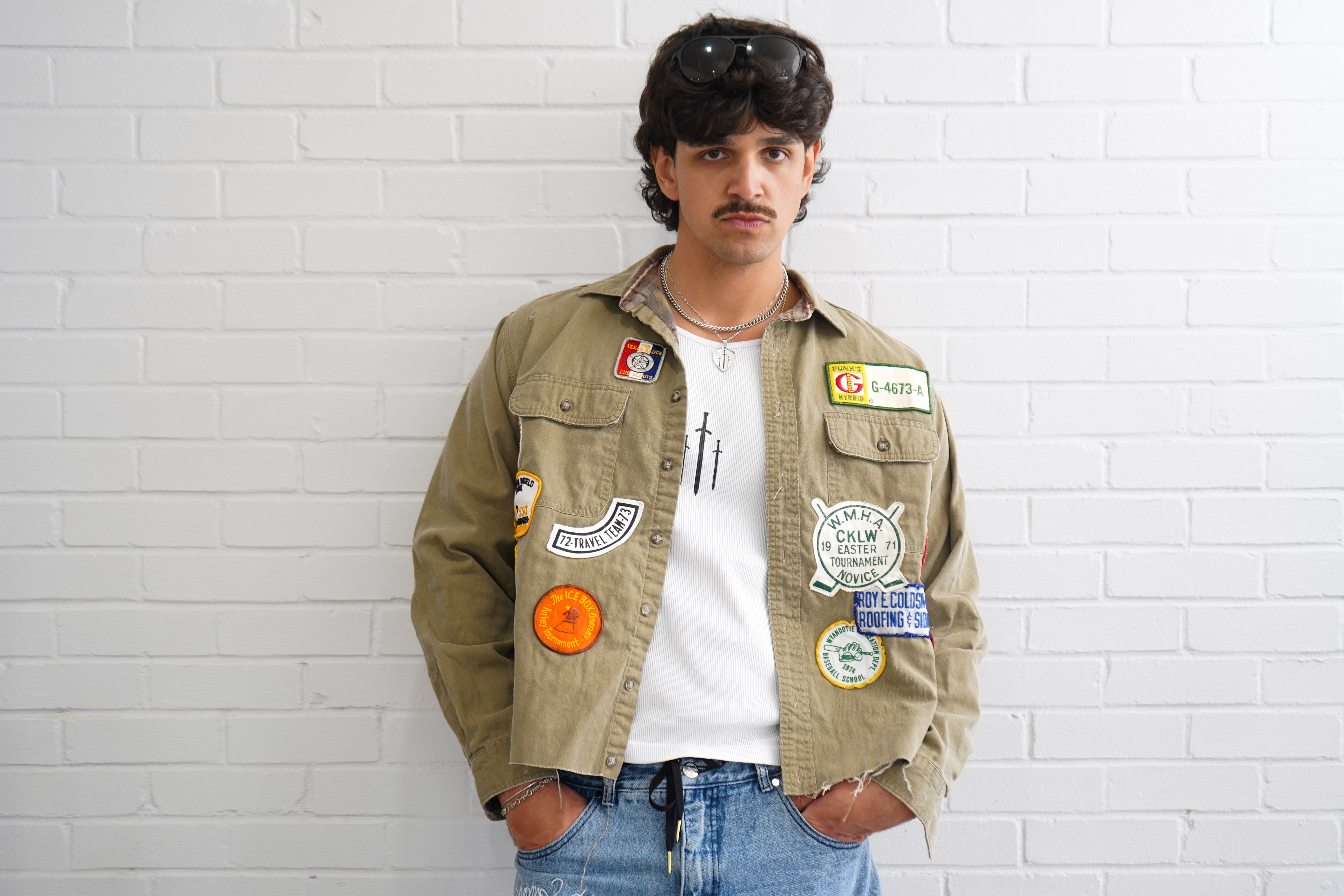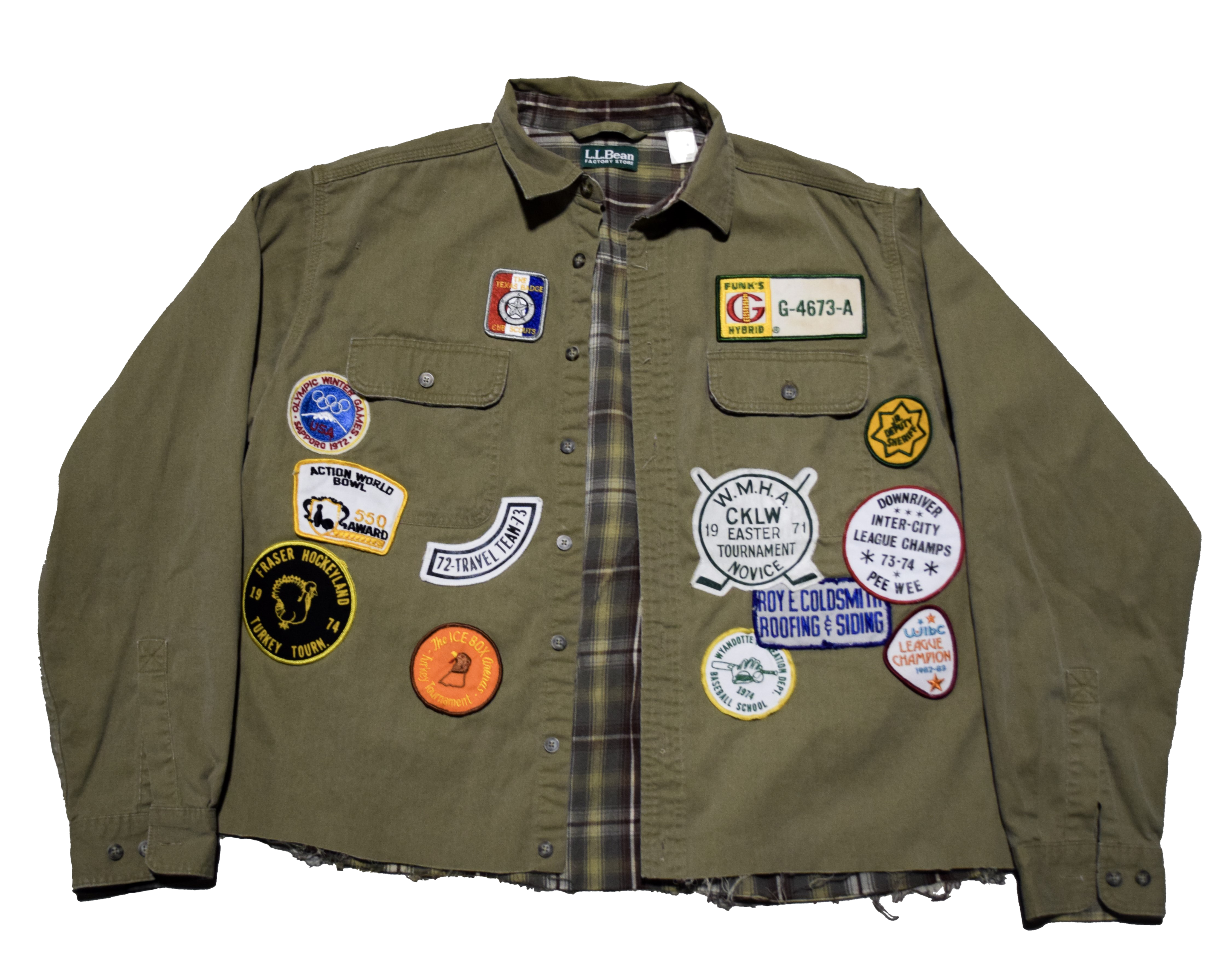 Cut and sewn in Austin, Texas. Brandishing vintage patches from all over the United States of America.