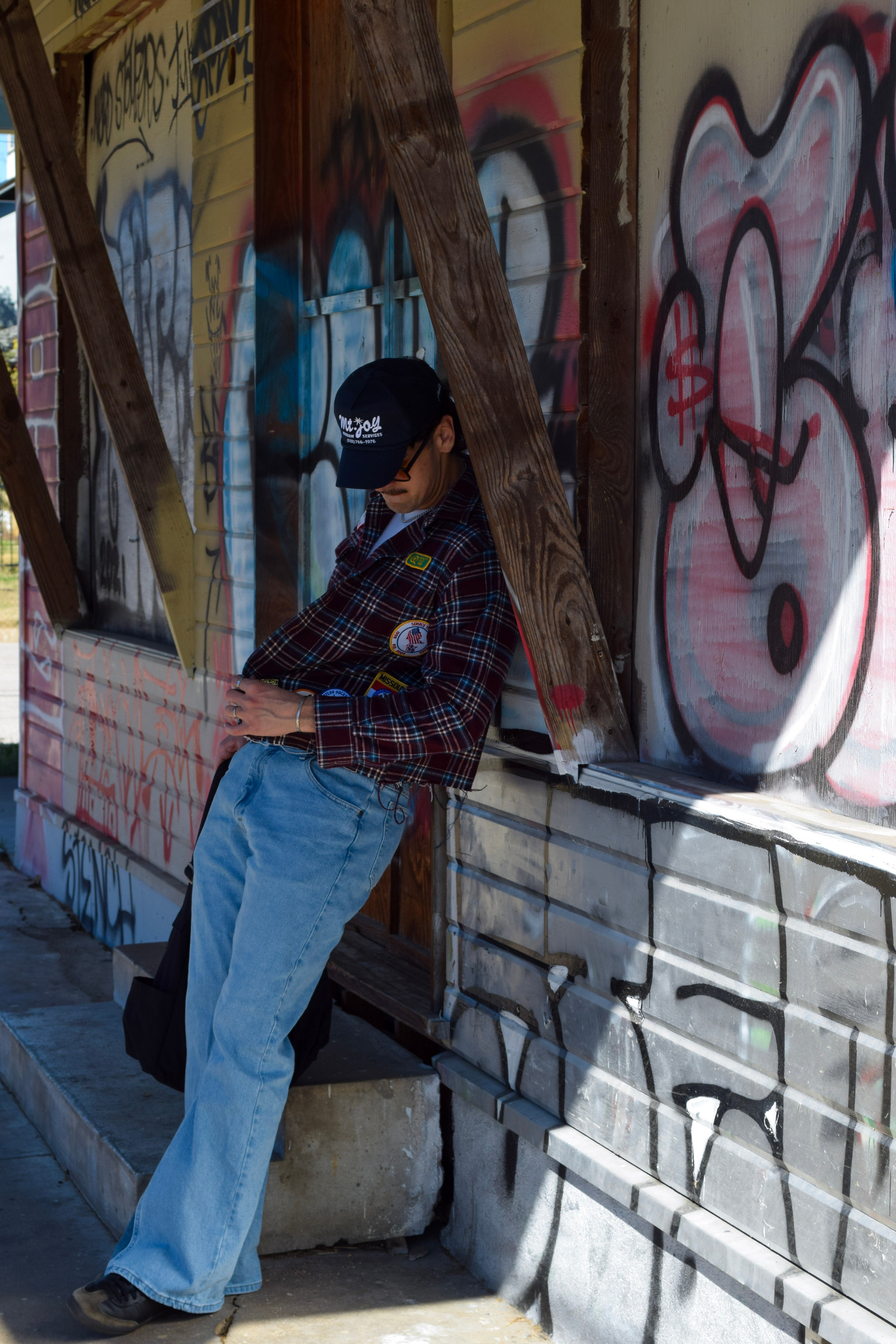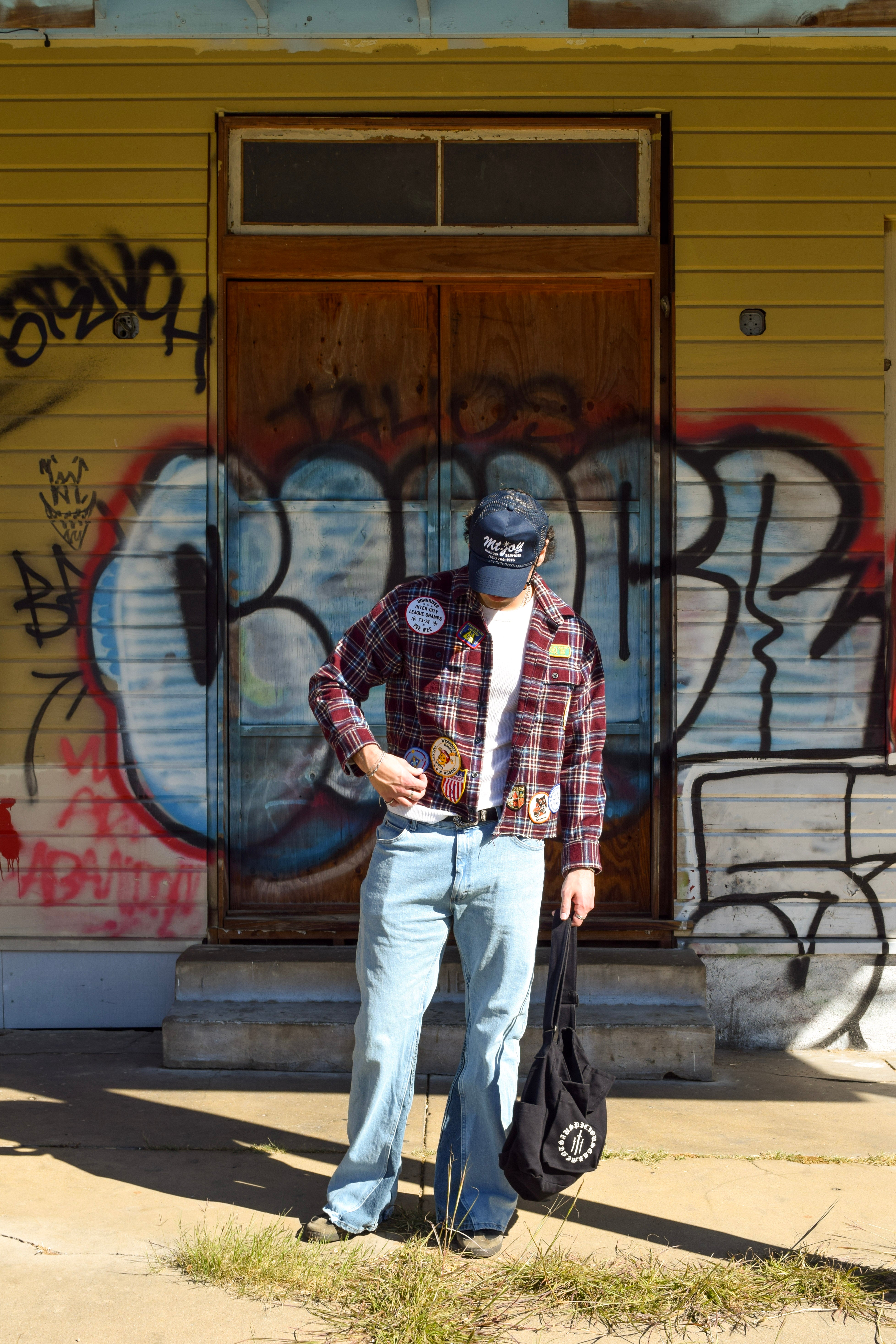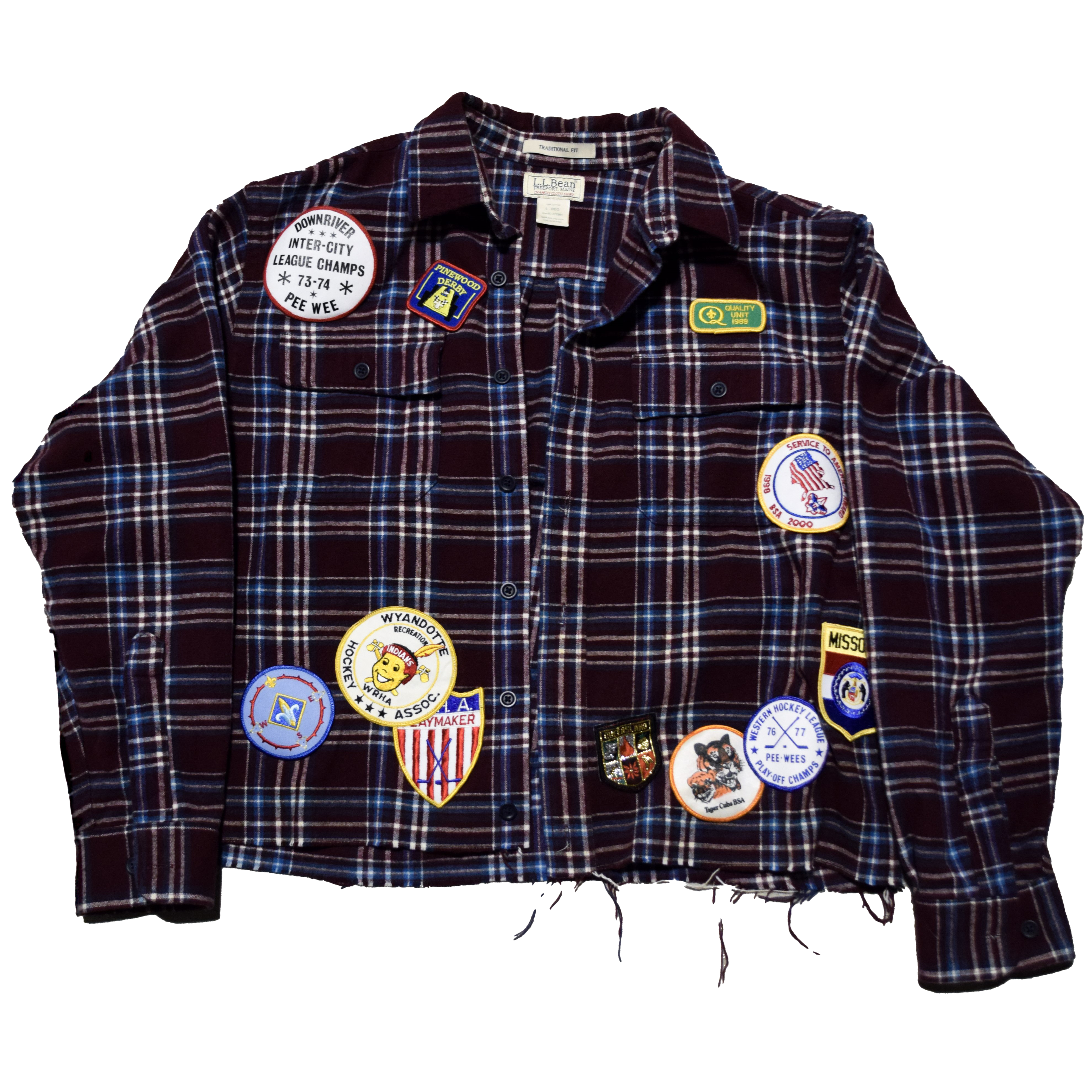 Cut and sewn in Austin, Texas. Brandishing vintage patches from all over the United States of America.