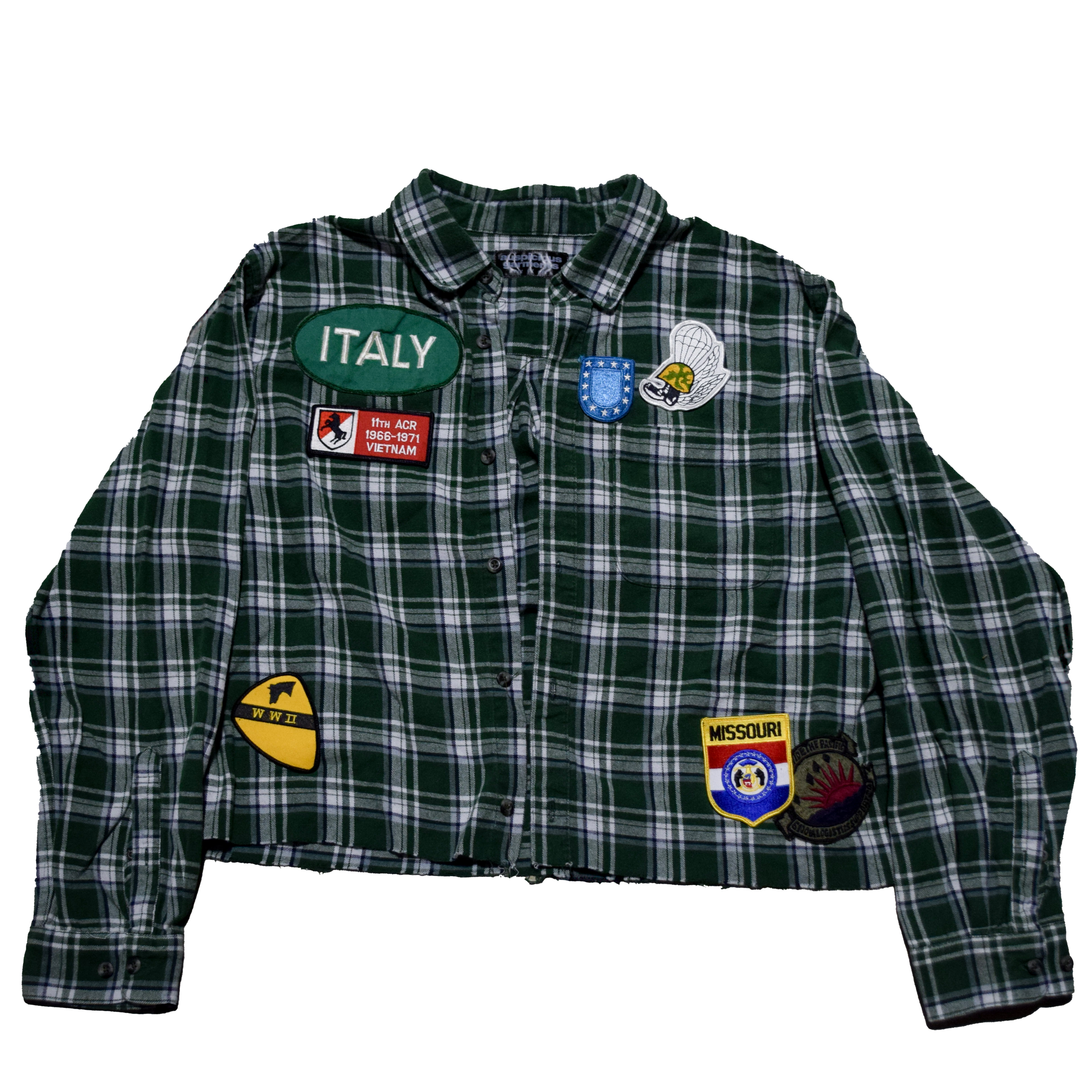 Cut and sewn in Austin, Texas. Brandishing vintage patches from all over the United States of America.
