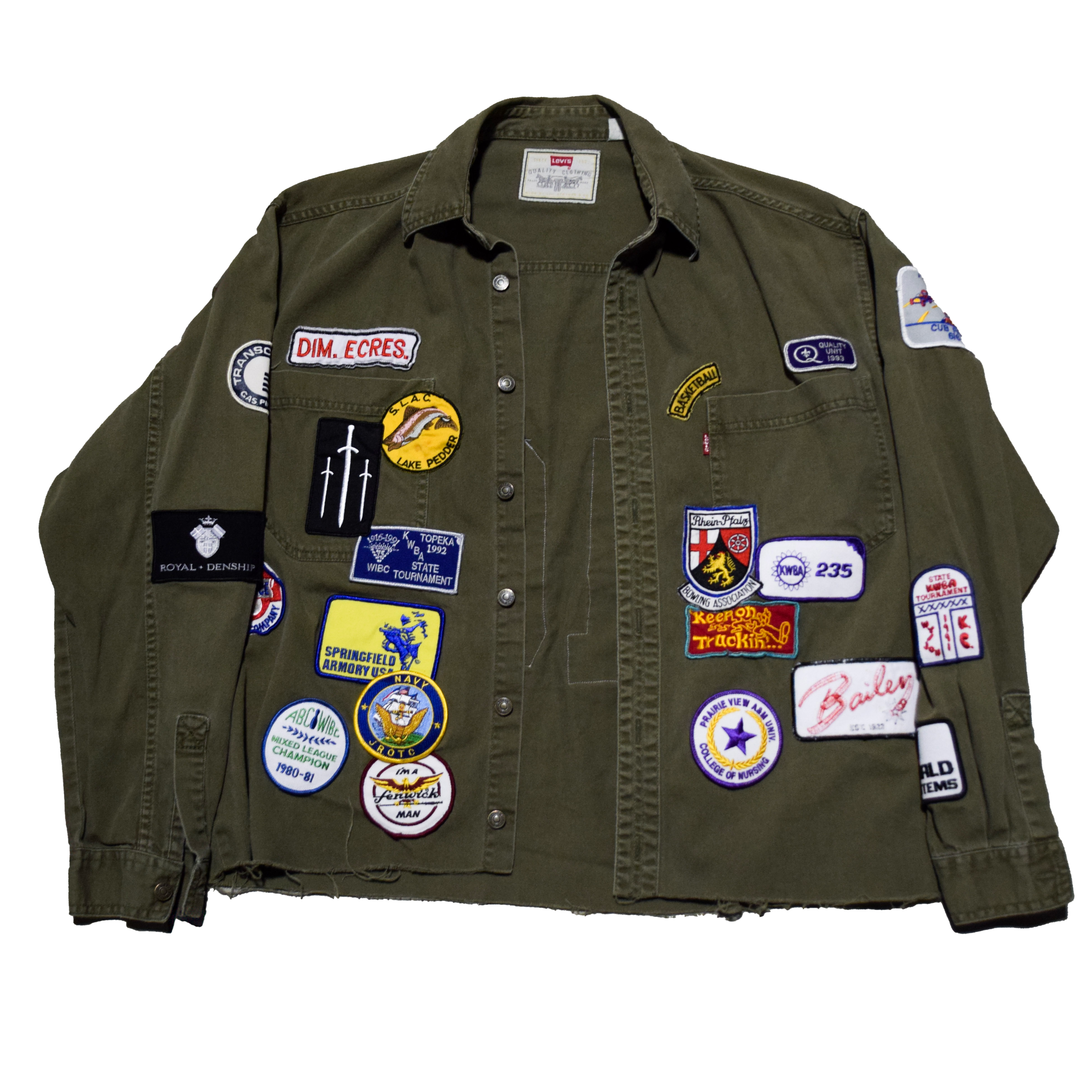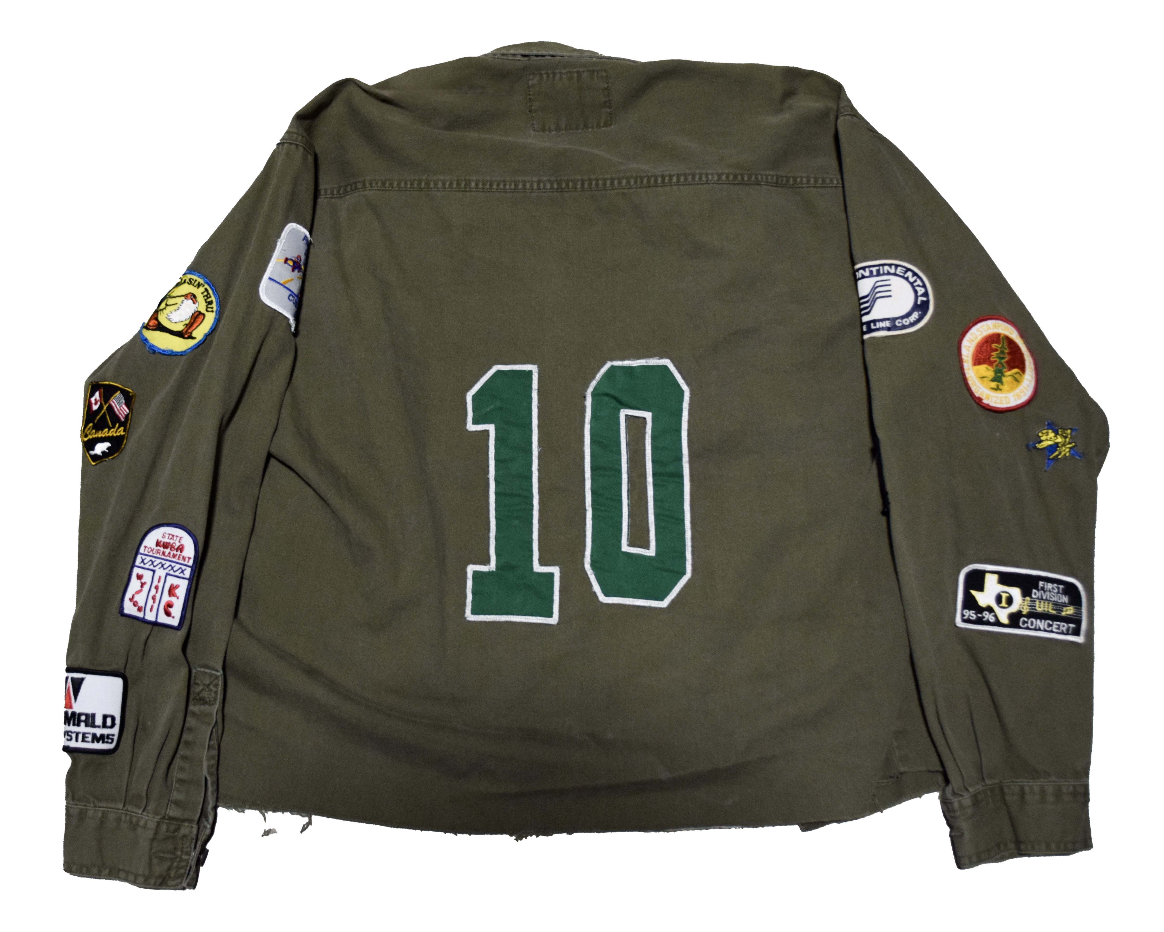 Cut and sewn in Austin, Texas. Brandishing vintage patches from all over the United States of America.