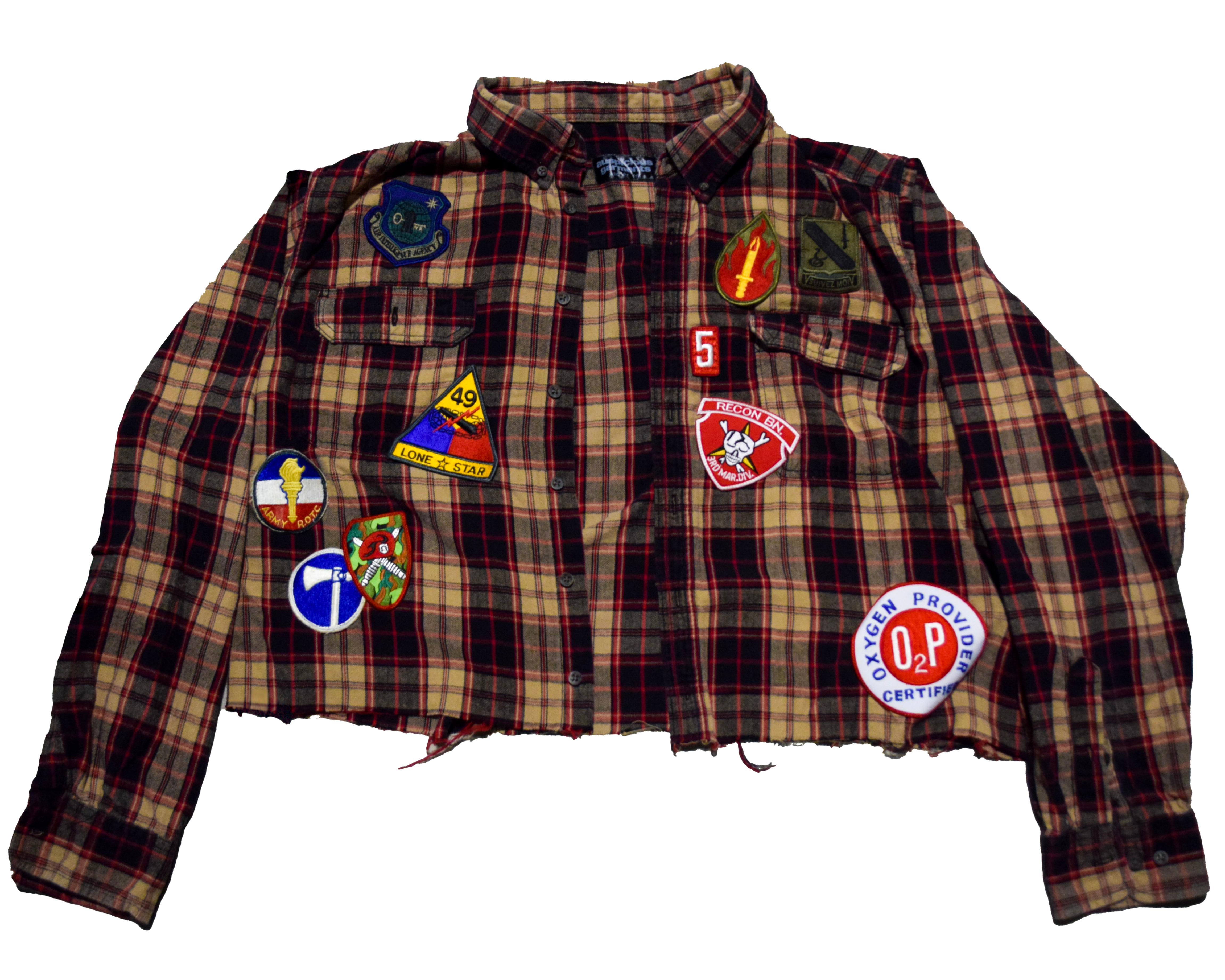 Cut and sewn in Austin, Texas. Brandishing vintage patches from all over the United States of America.