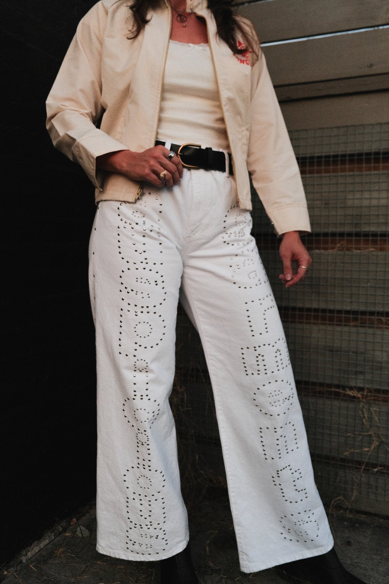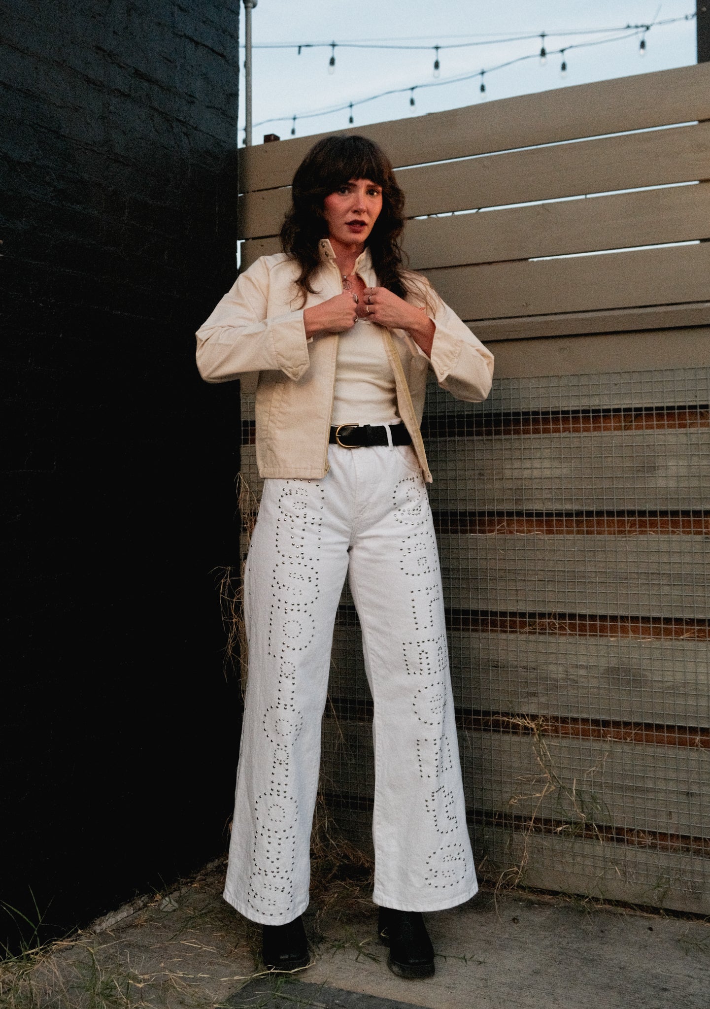 Please note that this garment comes cropped and will have loose thread hanging from it. We consider these features and not defects. They are meant to have a "worn-in" look and feel.