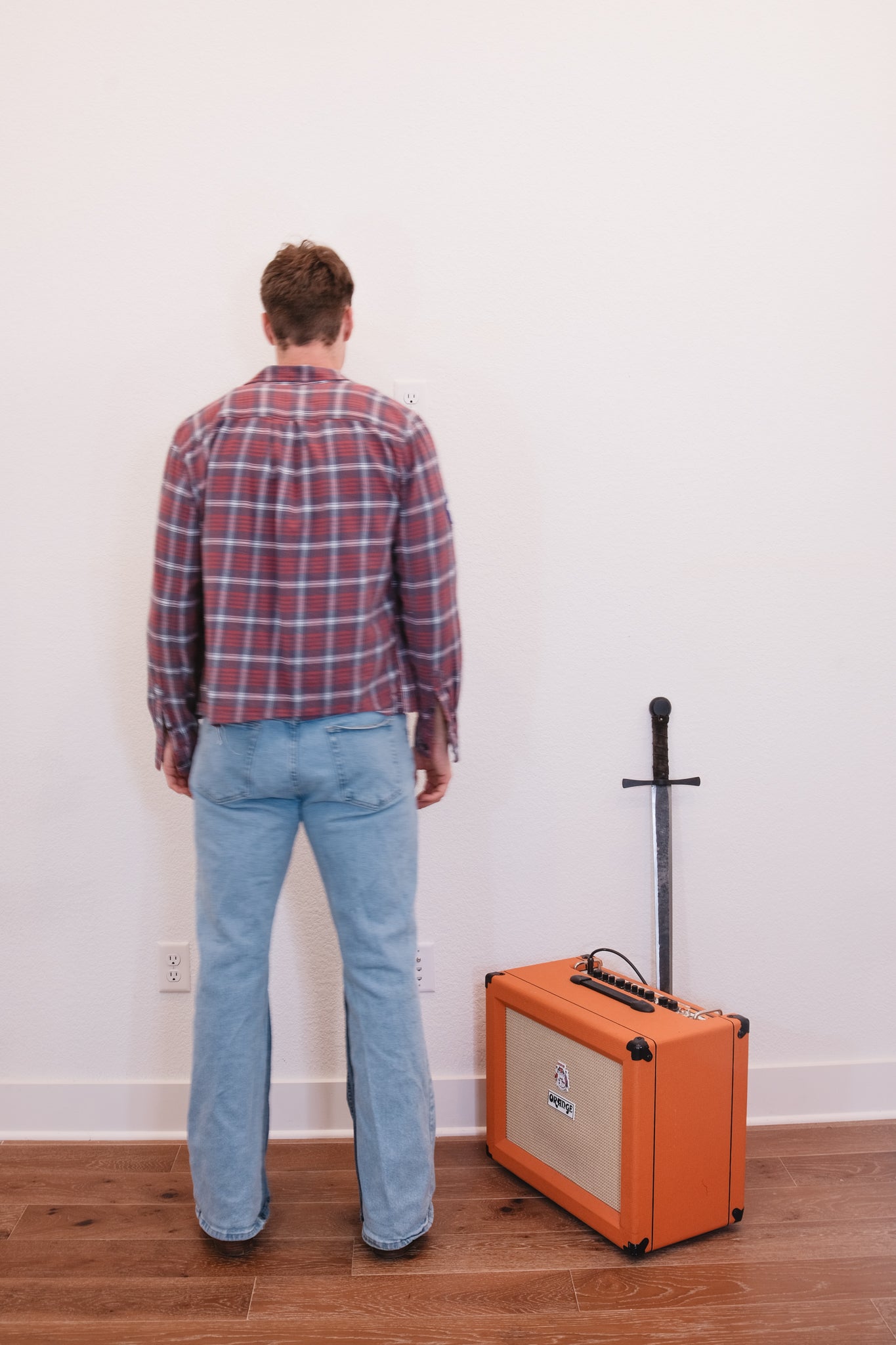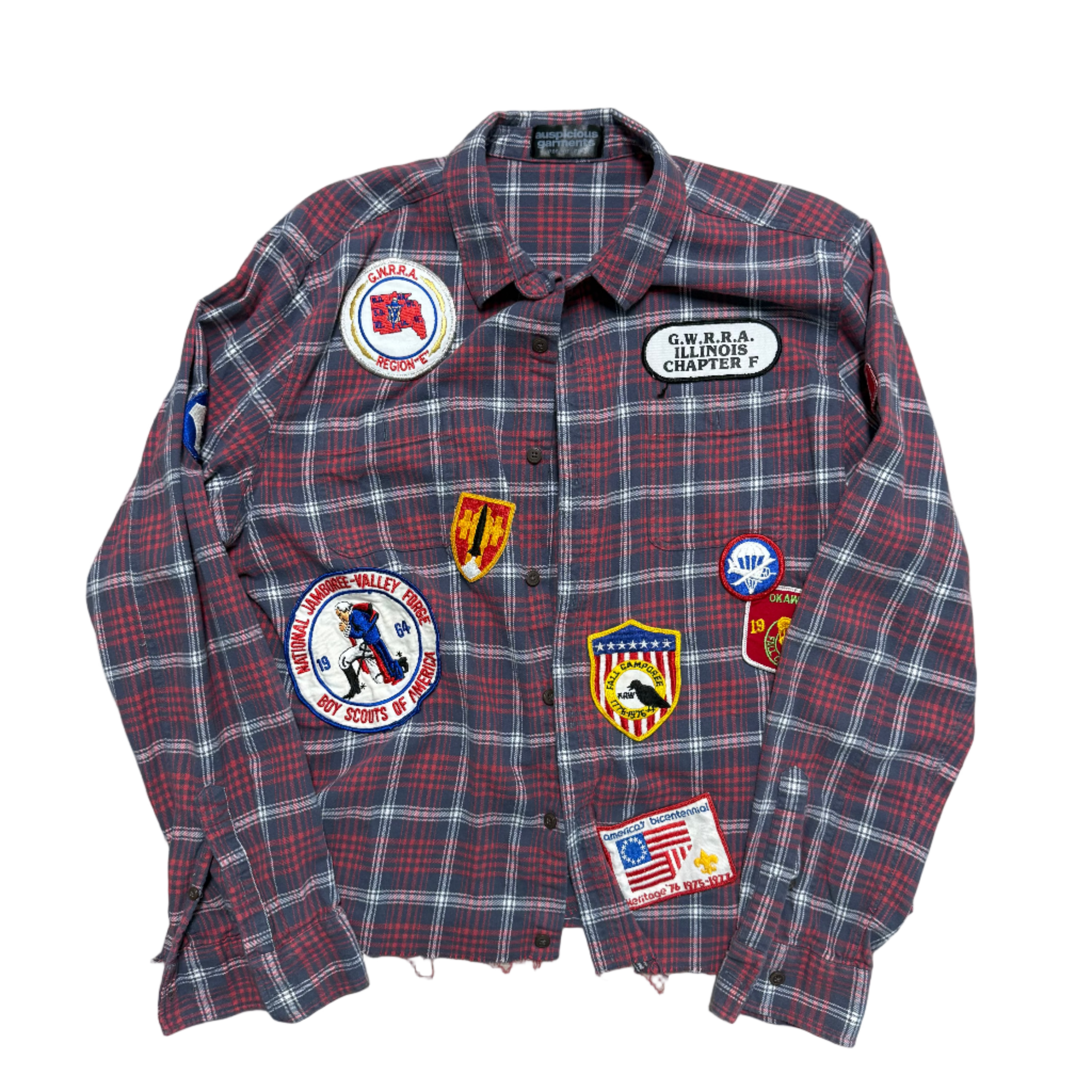 No size tag, light distressing throughout.