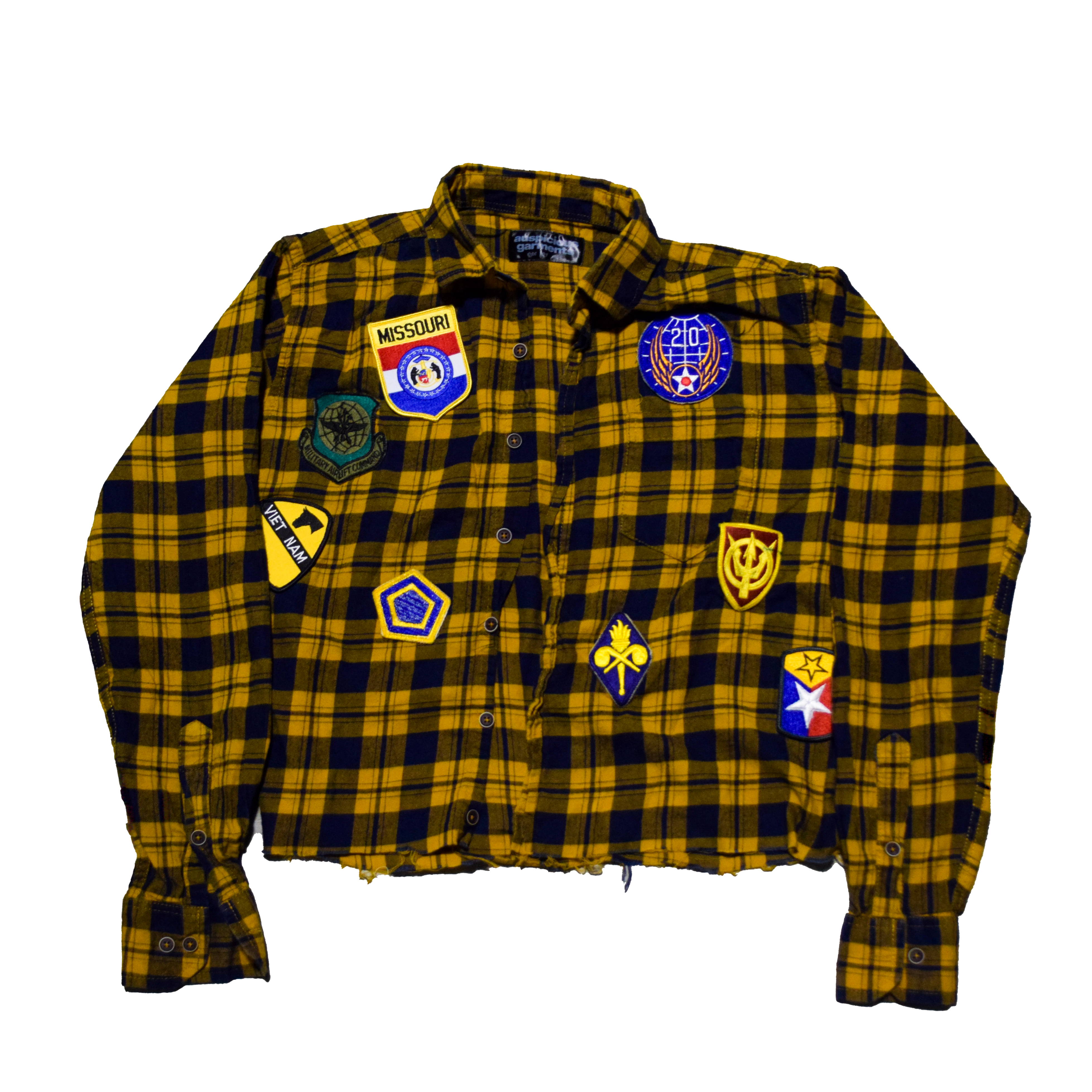 Cut and sewn in Austin, Texas. Brandishing vintage patches from all over the United States of America.