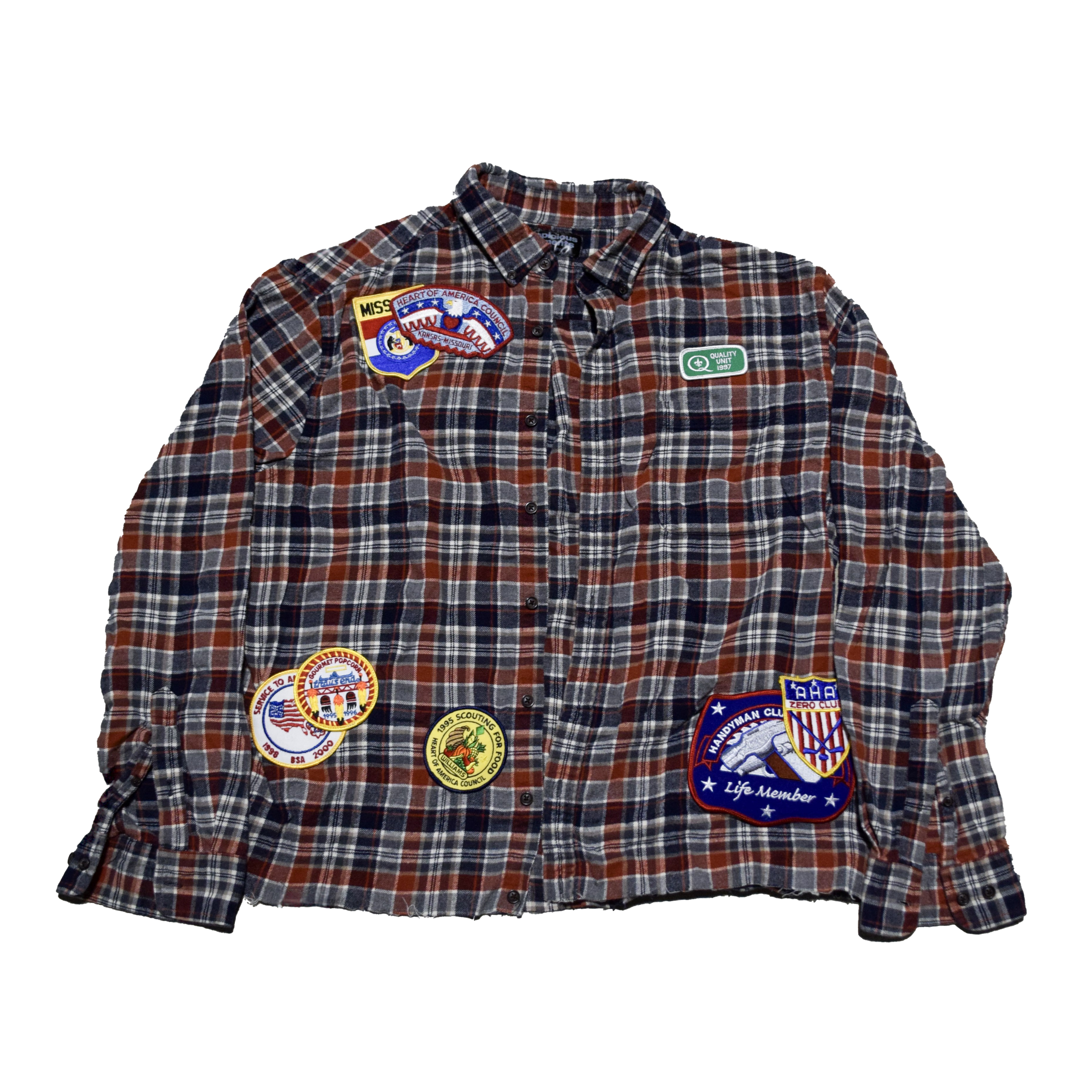 Cut and sewn in Austin, Texas. Brandishing vintage patches from all over the United States of America.