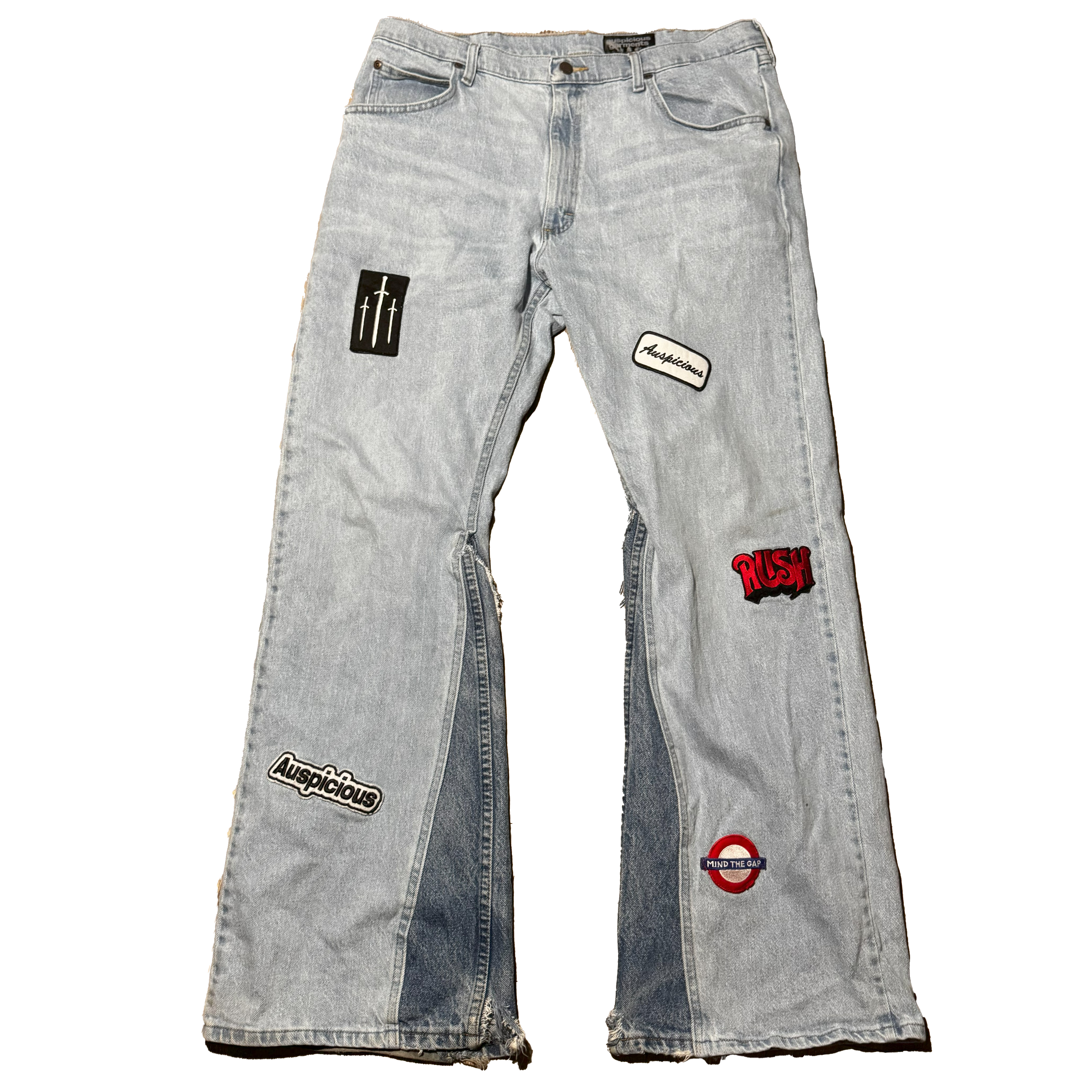 Flared Jeans with patches.