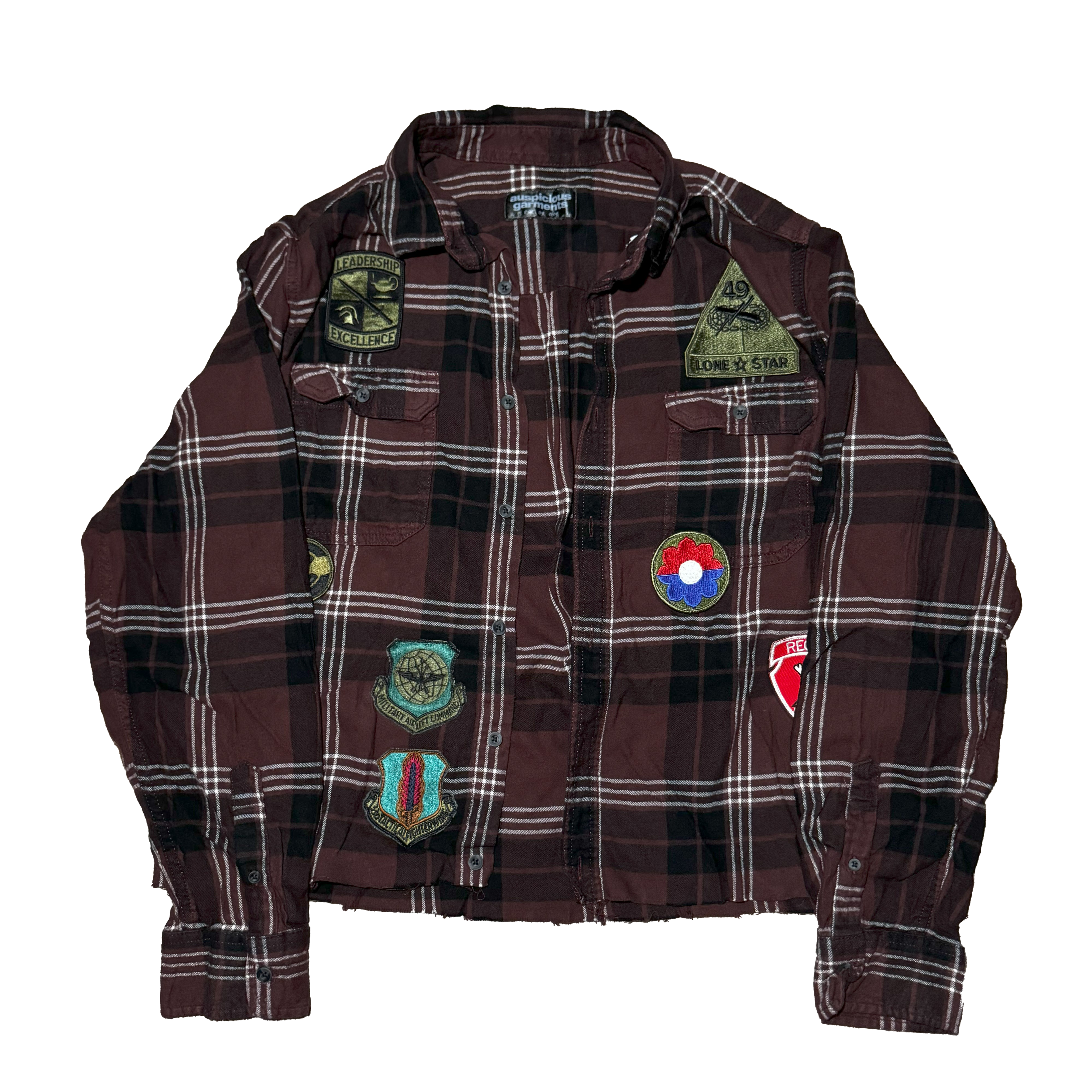 Cut and sewn in Austin, Texas. Brandishing vintage patches from all over the United States of America.