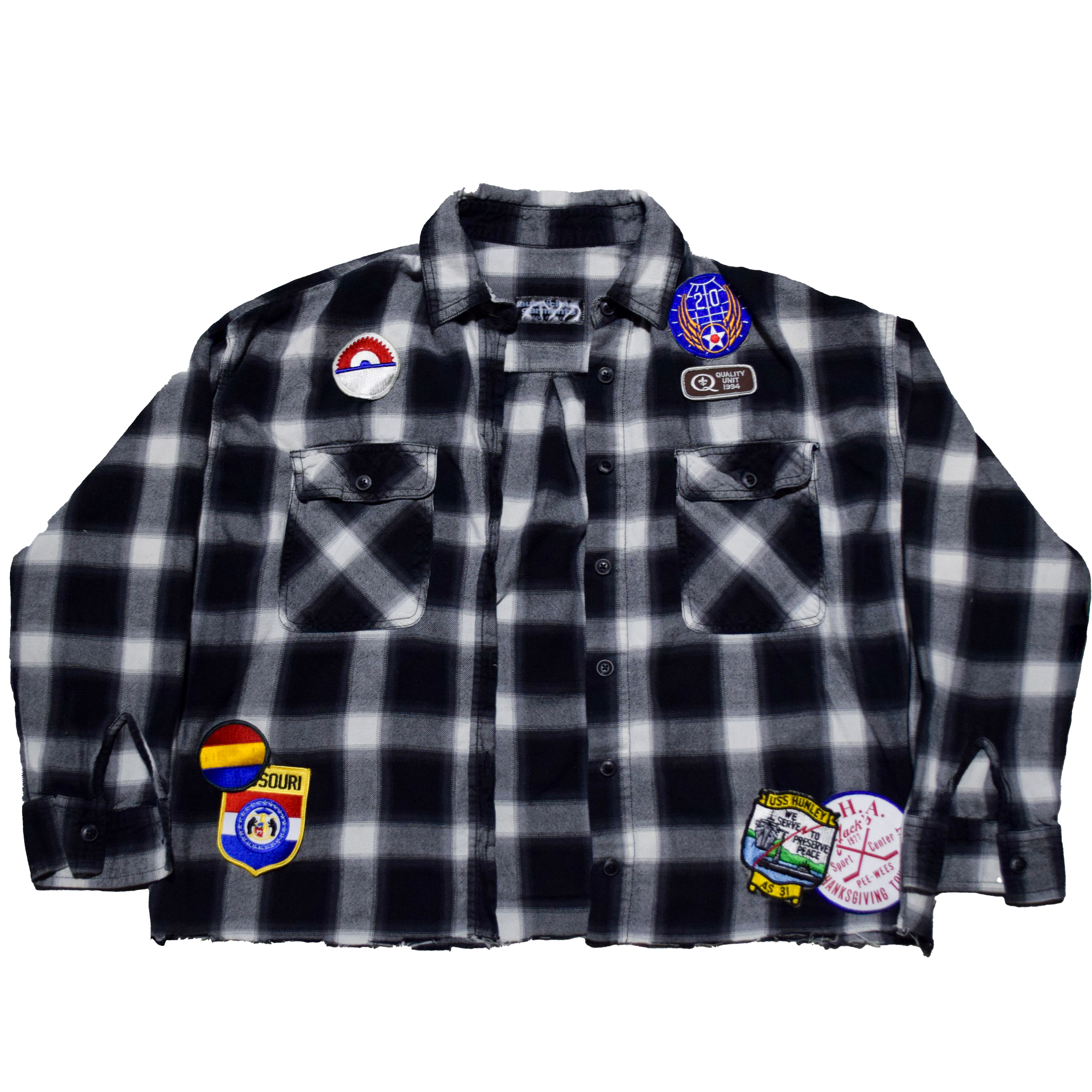 Cut and sewn in Austin, Texas. Brandishing vintage patches from all over the United States of America.