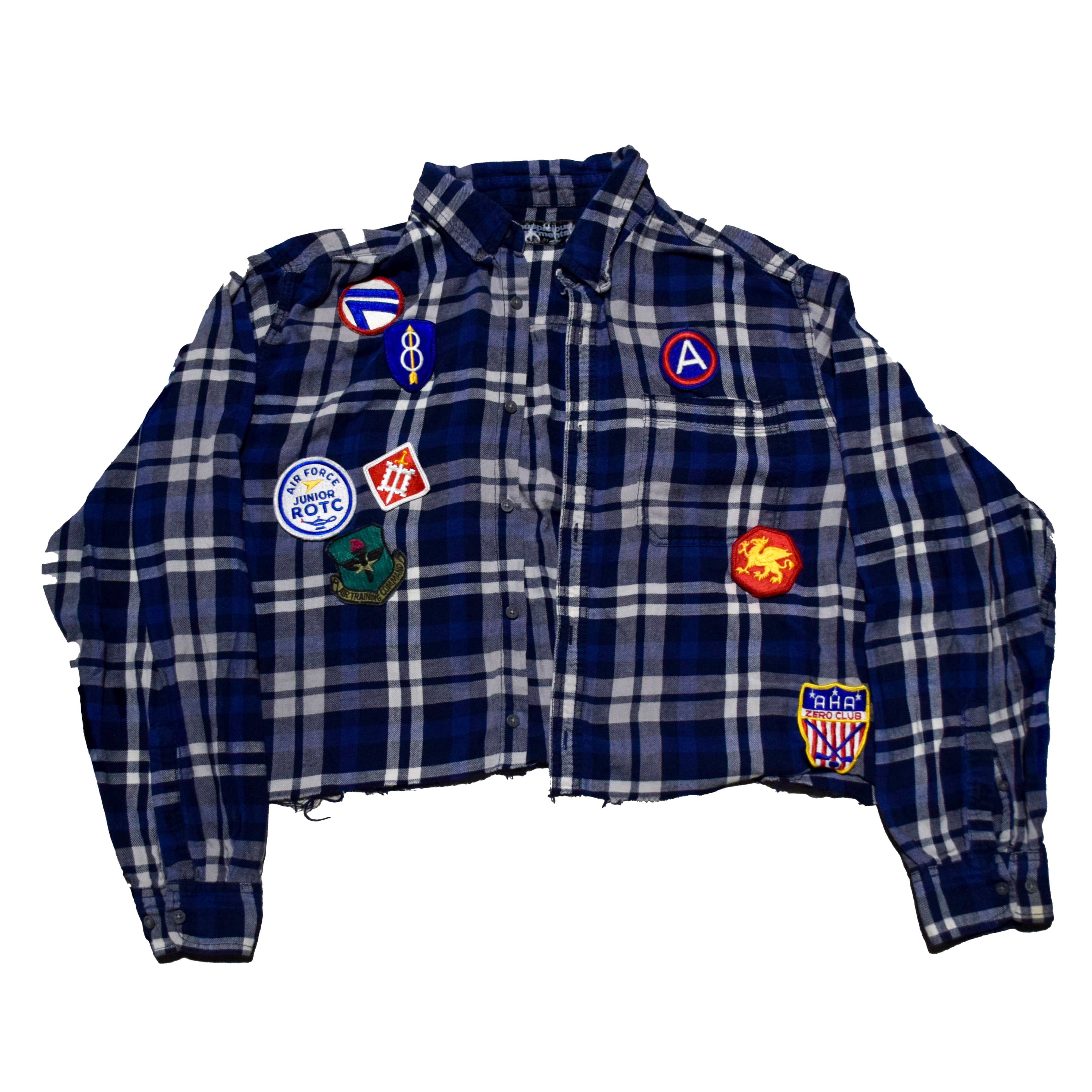 Cut and sewn in Austin, Texas. Brandishing vintage patches from all over the United States of America.