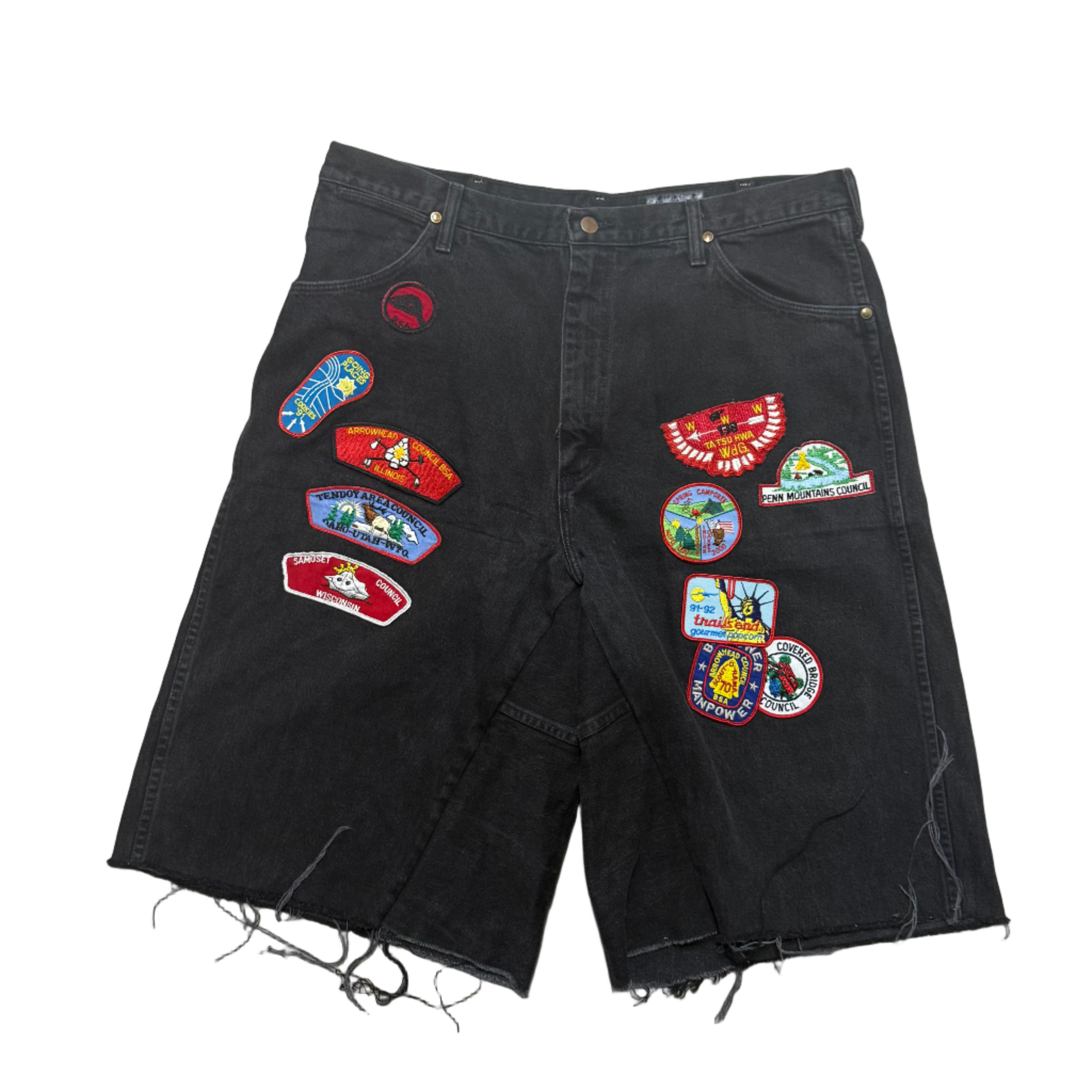 Cut and sewn in Austin, Texas. Brandishing vintage patches from all over the United States of America.
